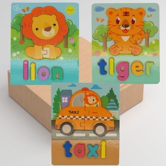 Cada puzzle em madeira ajuda as crianças a aprender inglês, a desenvolver a criatividade e a descobrir o prazer de aprender a brincar.